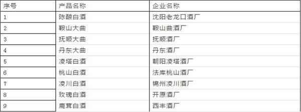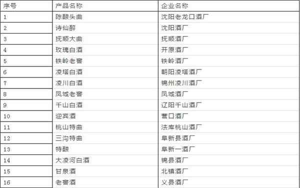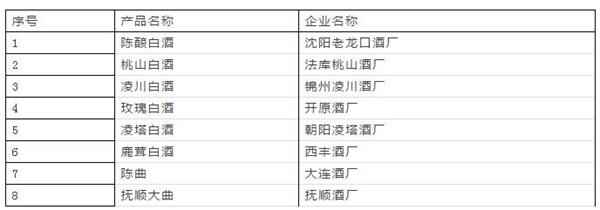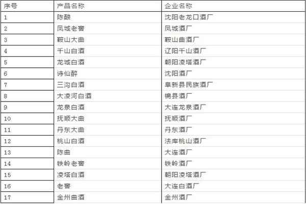 二、1973年辽宁省名优白酒名单(排名不分先后)