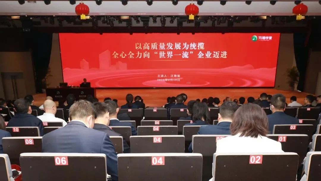首堂课由汪地强讲授,其主题为《以高质量发展为统揽,全心全意向“世界一流”企业迈进》,并对高质量的概念和内涵、高质量带来的前景及习酒高质量发展路径进行了全面系统的讲解。