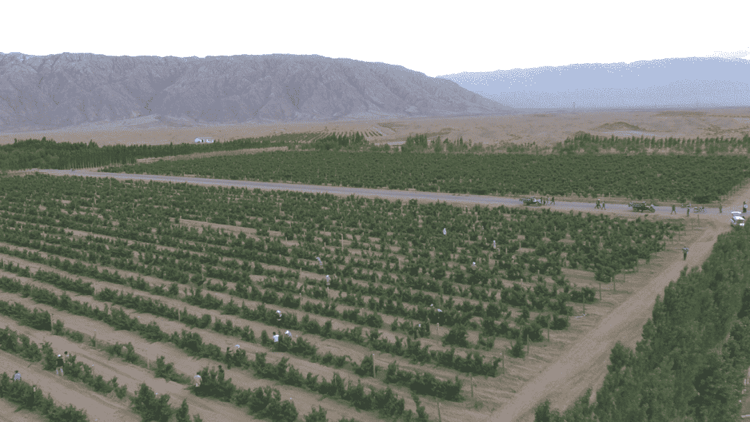 除了堆起一座“白石山”,建庄伊始,为了防风固沙,他们还在葡萄园周围栽种40,000棵青杨与胡杨。