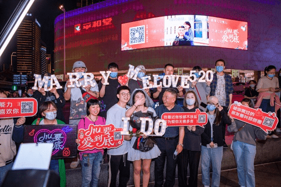 5月20日晚八点,长沙五一广场平和堂、锦绣中环、凯德广场、黄兴广场等全省109块户外大屏变身告白墙,被各种爱的告白霸屏。