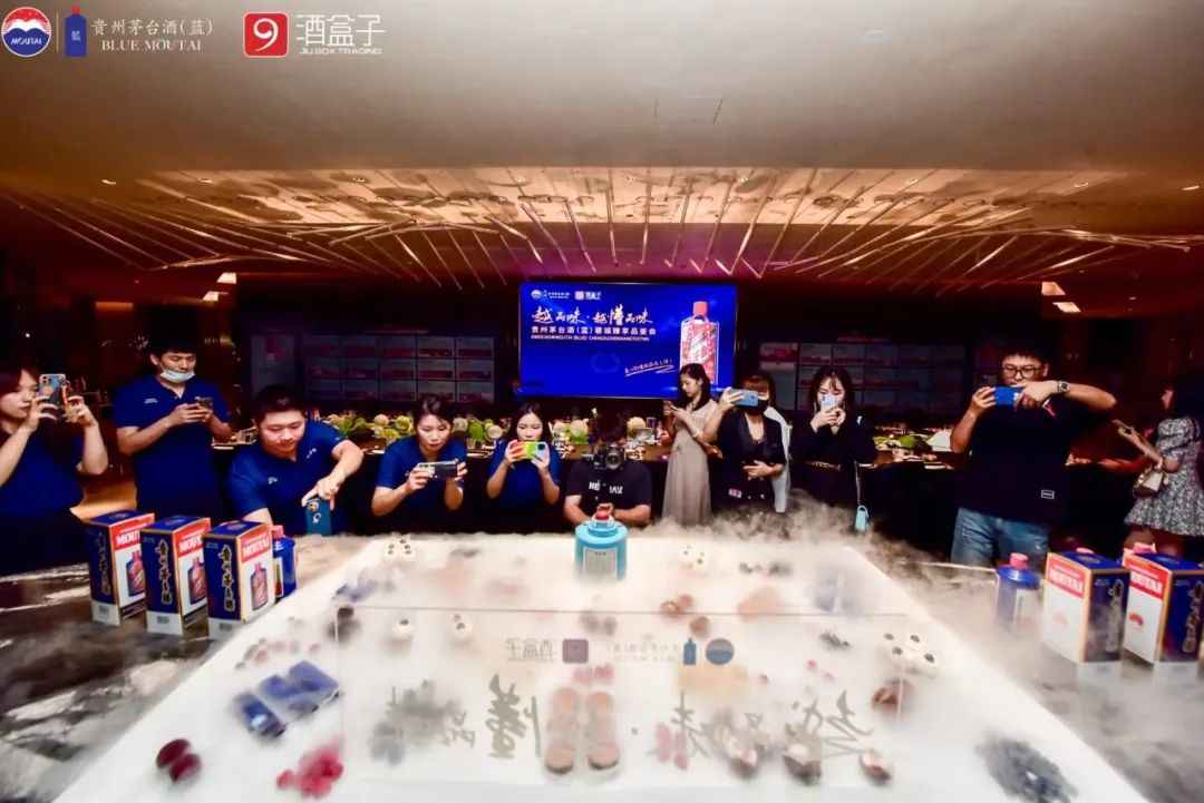 高跟鞋、晚礼服、钢琴乐……多位靓丽、帅气的主播正在镜头前展示着这场活动的主角——茅台蓝。各种型号的摄影器材随处可见,只为全面记录这一场活动。