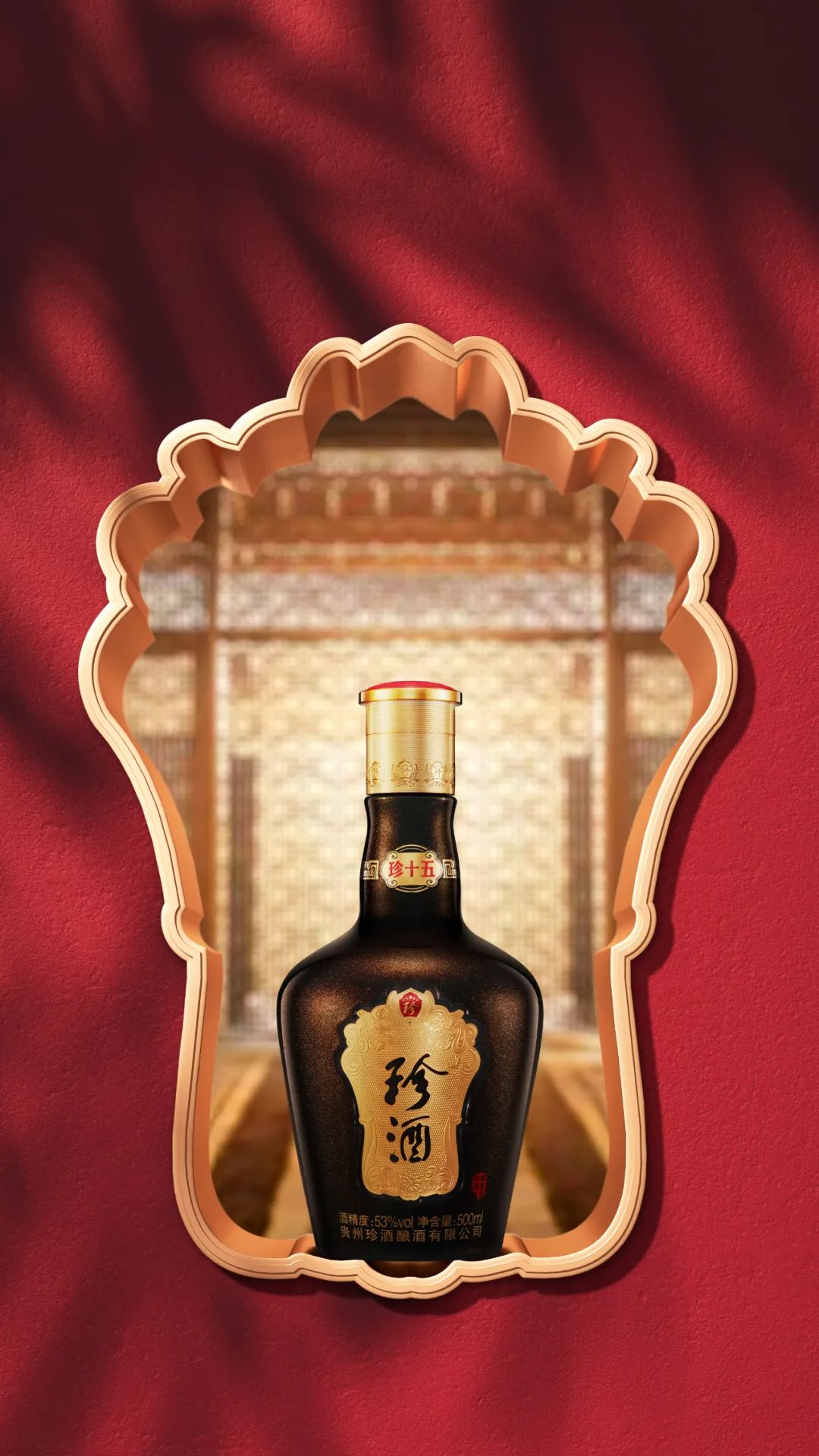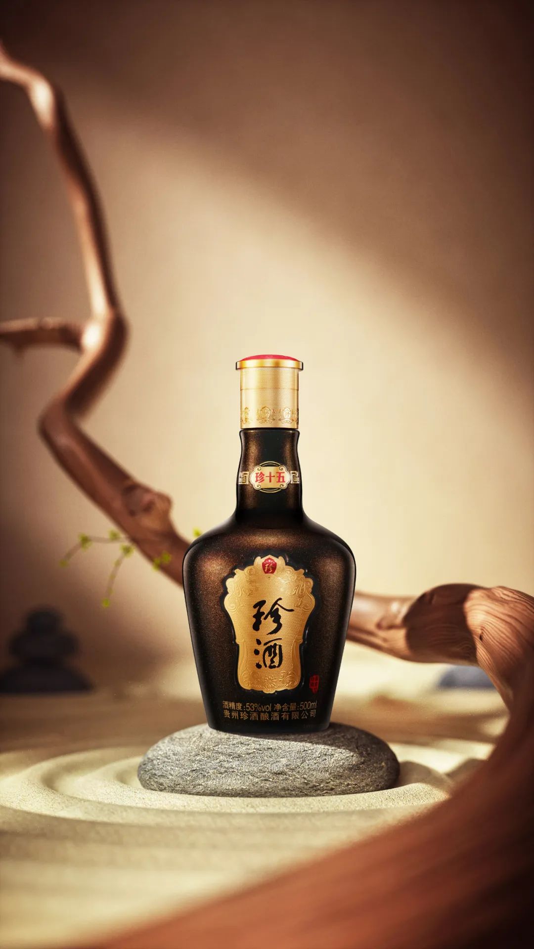 “第三代·珍十五第一个亮点是整体色调采用珠光麒麟褐色搭配库金,尽显东方品味。”贵州珍酒酒业副总经理兼产品总监王钢现场介绍说:“第二,瓶盖颈部8个‘珍’字盾牌,寓意畅销四面八方;第三,瓶颈部正面选用库金色吉祥如意形做珍十五标,搭配通体珠光麒麟褐色的瓶体和选用库金、满金的盾牌,凸显珍酒品牌;第四,瓶身正面'盾牌'融合铂金浮雕工艺,致敬珍酒酿艺;第五,四周浮雕花纹点缀,凹凸雅致,中间精细化雕刻,光彩熠熠,并取国务院原副总理方毅题词中‘珍酒’二字,彰显珍藏价值。”