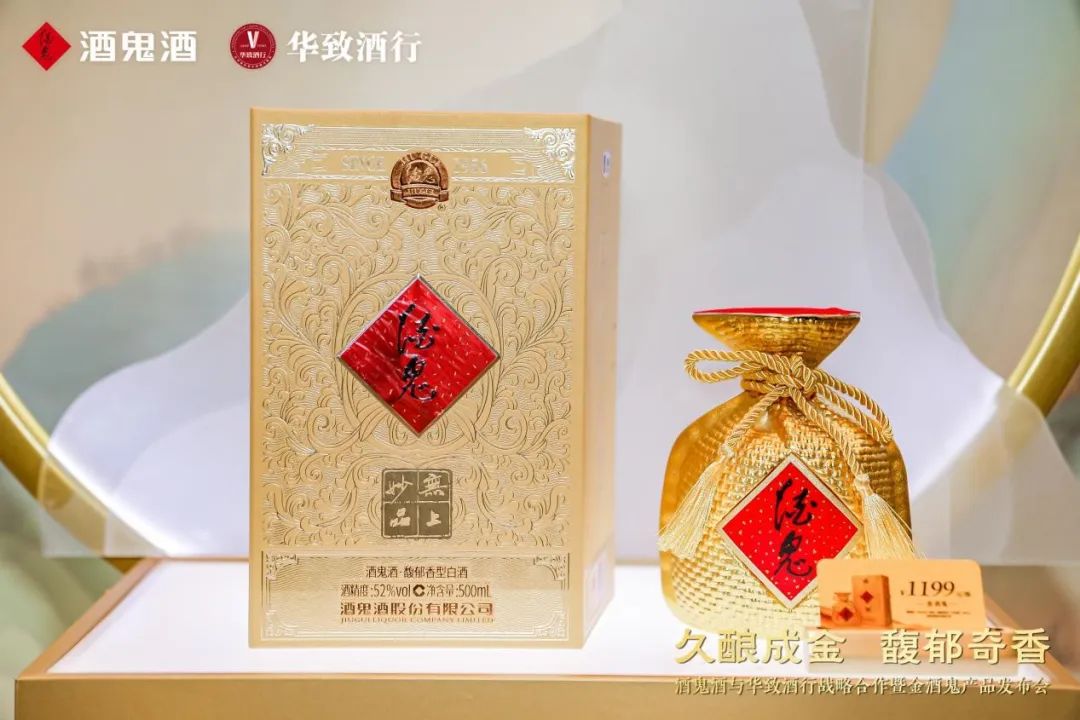 在本次发布会上,华致酒行与酒鬼酒合力打造的高端新品“金酒鬼”也“金贵”上市。据了解,52度500ml“金酒鬼”锁定千元价格带,挂牌价为1199元/瓶。