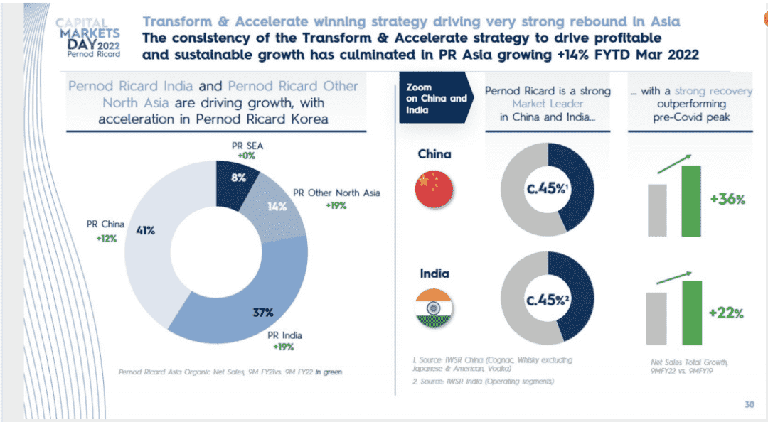 据悉,在2022财年的前九个月(注:2021年7月1日-2022年3月31日),保乐力加的中国净销售额较疫情前的2019财年同期增长了36%。