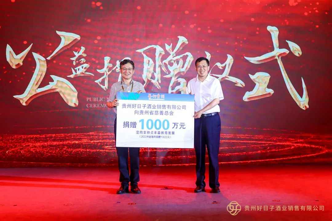 会上,主持人激动地公布,好日子酒业立足自身发展,心系教育事业,经过充分调研和考察,结合实际,好日子酒业向贵州省慈善总会捐款1000万元,自2022年起,每年捐赠100万,连续捐赠10年,定向用于贞丰的教育事业。