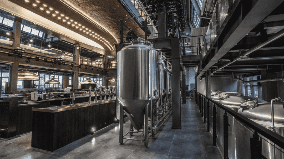 在现场,我们看到入门处透过全开放透明式地板结构,就可以直接观察到负一层的精酿生产过程;更吸引大家的,是把欢聚的餐桌搬到了工厂里,消费者的品鉴室就建在酒窖里,“透明式”极致感受让人感受到与以往“畅饮”绝然不同的“厂饮”新体验。
