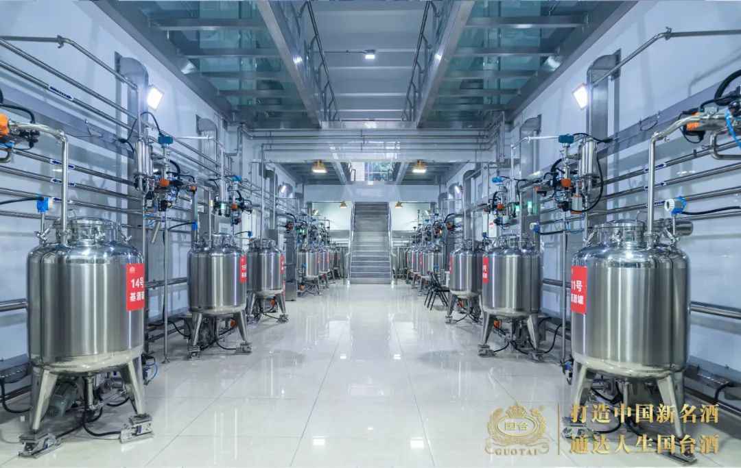 国台研发了一套智能接酒系统——酒甑产生的酒蒸汽通过管道进入密闭的冷却系统,冷凝过后,酒蒸汽液化为酒。并且采用在线监测系统控制的六通阀,实时反馈并智能控制摘酒的时间、酒精度、温度,不同的酒体经过不同的出酒管道分别自动流向不同的酒罐储存。