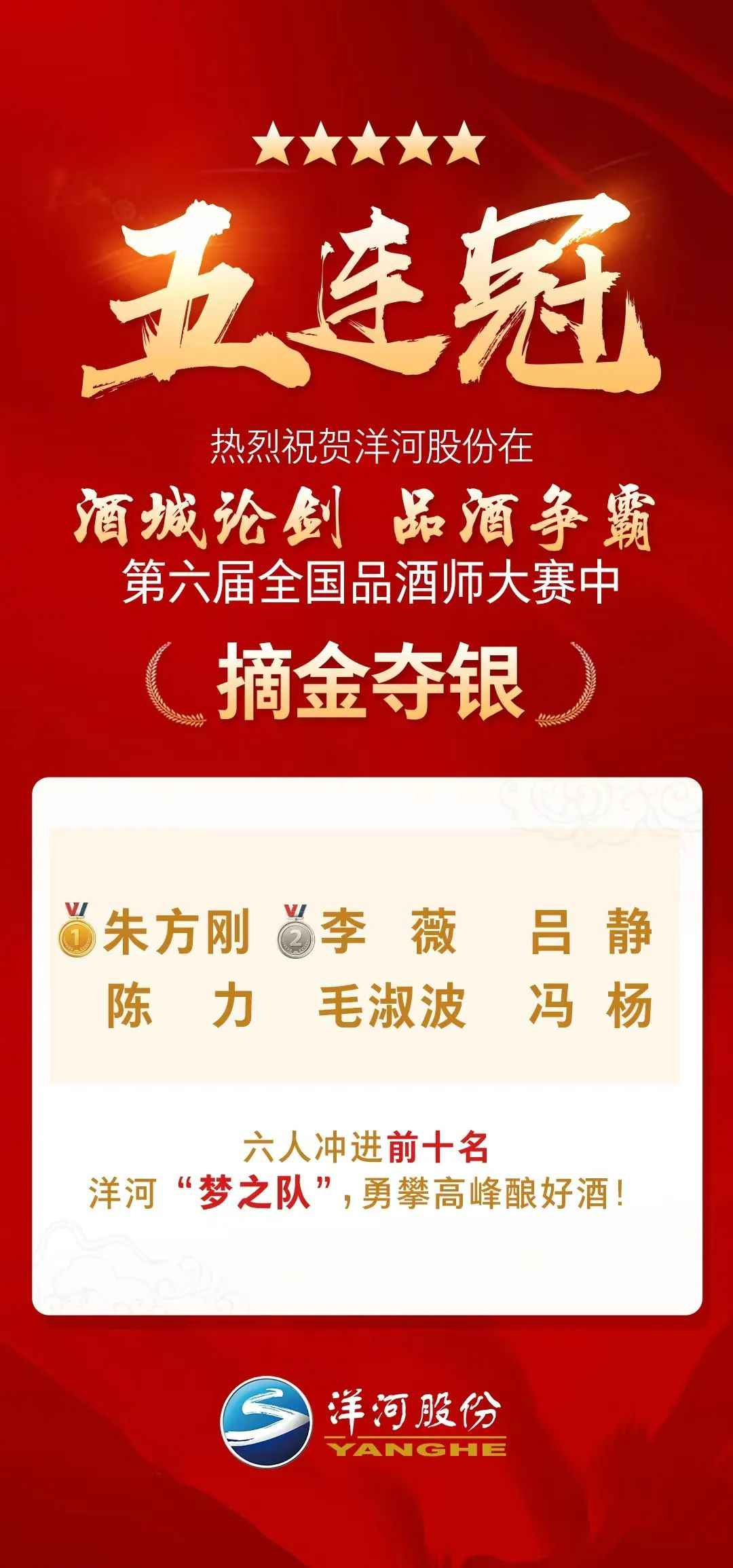 7月14日,为期两天的第六届全国品酒师大赛在泸州落下帷幕。华体会体育正规网 网记者发现,洋河股份的朱方刚、李薇分别夺得大赛第一名、第二名。此外,在大赛前10名中,洋河股份占了6位。