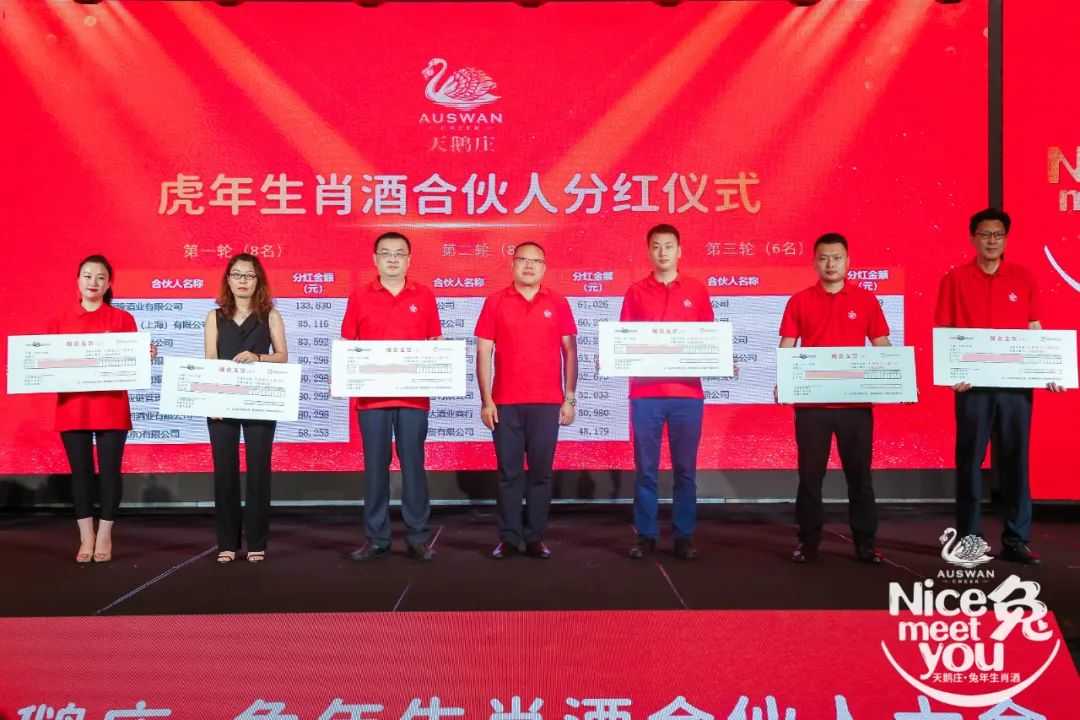 与生肖酒同样备受关注的,还有天鹅庄所承诺的“利益共享”。与多数新品发布会不同的是,天鹅庄将合伙人分红环节放在了流程的最前端,一共向109位合伙人发放了虎年生肖酒3061950元的分红。
