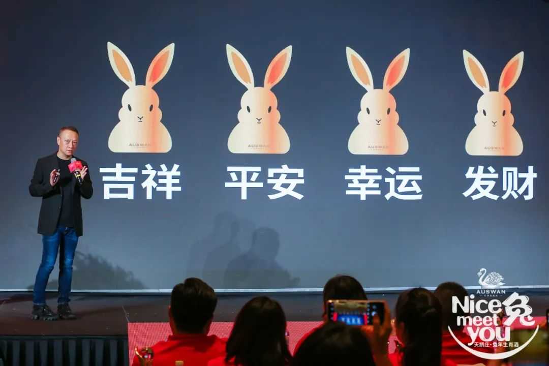 由此,天鹅酿酒集团联合创始人、总设计师牛锐判断,“疫情、俄乌战争等突然事件牵一发而动全身,全球经济陷入螺旋式下滑,人们普遍缺少幸福感,大家需要一个能够带来幸福感的兔年礼物,幸福首先来自于一个温暖的问候,即我们今天的主题Nice 兔 meet you。”