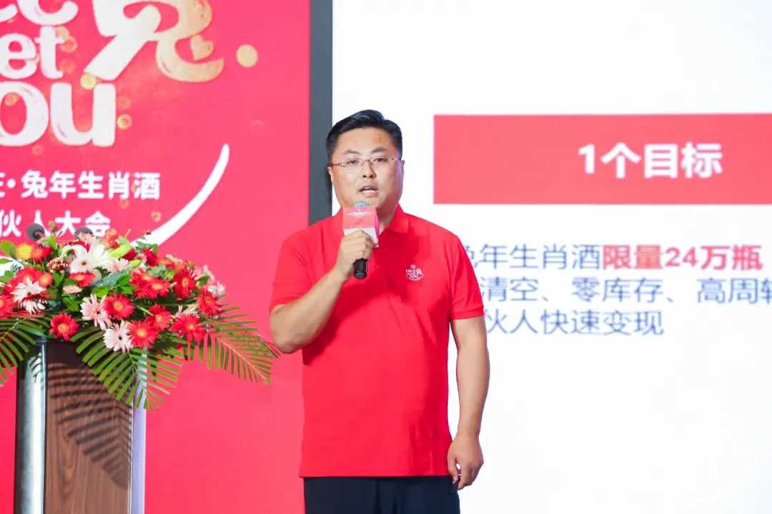 “考虑到当下疲软的经济环境,我们为了减轻合伙人的销售和库存压力,决定主动限量”,由此,张登尧也提出了“1+3”的配套措施,即达成“大金兔”24万瓶的销售目标,以及深度协助合伙人做好生肖酒预售、大力度做好生肖进名企活动、积极促进1+3生肖城市联盟体建设。