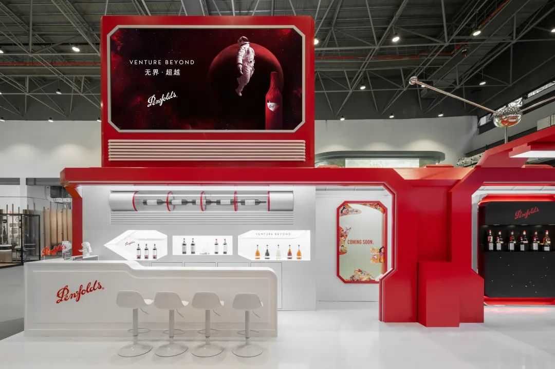 进入3号馆,亮眼的“奔富红”随即映入眼帘。据了解,此次奔富展台是以“无界•超越”的品牌理念为设计灵感,打造出宇宙“太空舱”的既视感,整体以经典夺目的奔富红和太空银为主色调,并有着明显的功能分区,着力展现品牌超越地域和时间界限的精神与格局,给予了葡萄酒爱好者集品鉴、文化交流及趣味互动于一体的多元体验。