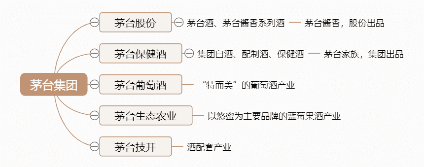 今年1月,丁雄军在第六届第二次职工代表大会上对2021年发展思路进行总结时,便提到了在子公司发展上的“五定”——定位、定向、定标、定行、定责;3月开始,茅台保健酒公司与茅台技开公司接连调整,丁雄军在调研中再次强调聚焦主责主业及“五定”战略;再加上后续各种补充信息,茅台集团主要酒类板块从交叉变为清晰,形成了如下框架——