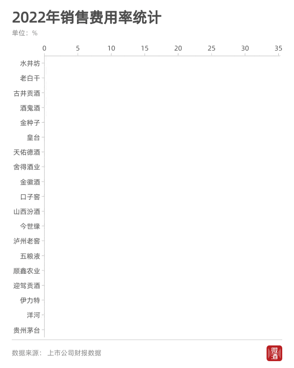 从销售费用占比来看,茅台销售费用率最低,水井坊最高。