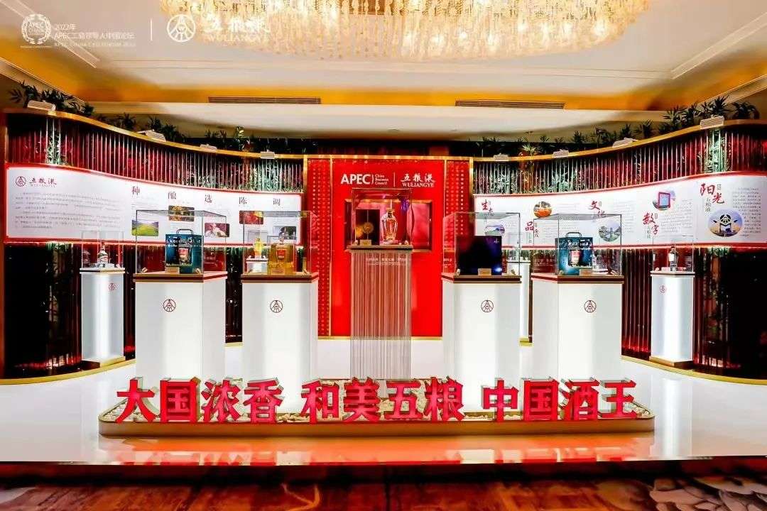 活动现场,中国加入APEC三十周年纪念款五粮液礼盒、2022年APEC工商领导人峰会X五粮液纪念款礼盒、2022年APEC工商领导人中国论坛X五粮液纪念款礼盒等多款联名定制产品,讲述着五粮液与APEC携手走过的岁月,传递着五粮液携手APEC共同推动亚太区域合作和全球可持续发展的初心愿景。