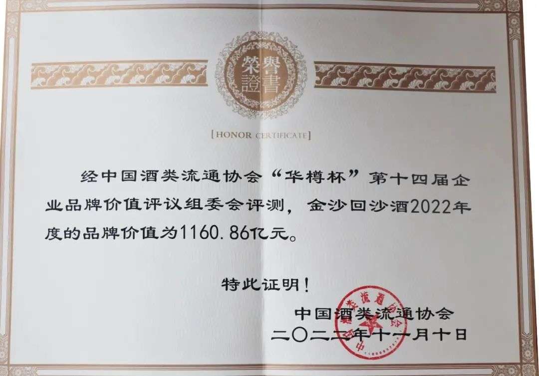 其中,金沙回沙酒2022年度品牌价值为1160.86亿元;