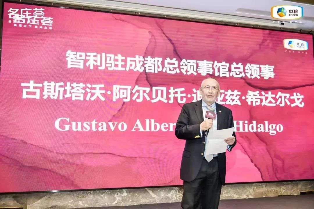 11月9日,以“名庄荟聚·逐梦共赢”为主题的2022年新品发布暨核心客户答谢晚宴在成都希尔顿酒店举行。智利驻成都总领事馆总领事古斯塔沃(Mr. Gustavo)亲临现场并表示,“后疫情时代,智利葡萄酒会不断适应市场,相信在与中粮名庄荟的携手努力下,智利葡萄酒在国内的发展一定会越来越好。”