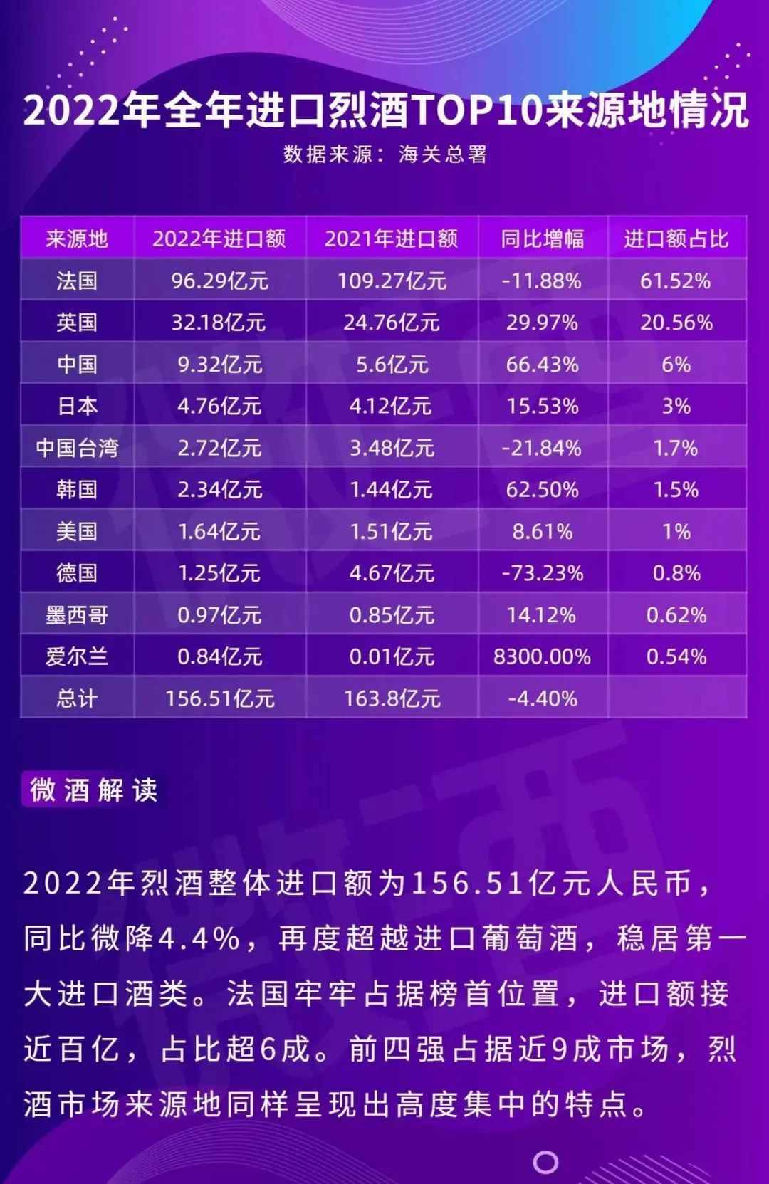 2022进口酒大数据:葡萄酒跌破百亿,烈酒稳居第一…
