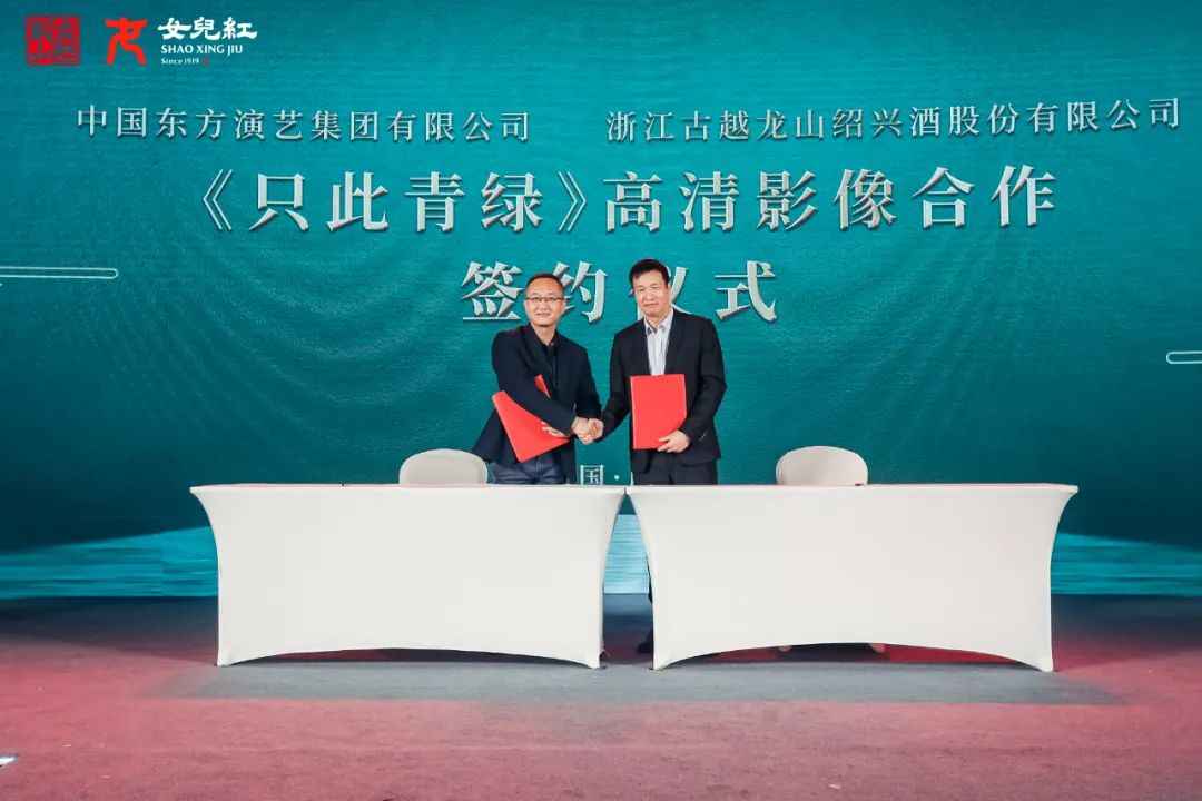 一年之后的成都,古越龙山股份公司总经理徐东良与中国东方演艺集团特派代表孙建铭共同签约,共同推出“只此青绿”高清影像,古越龙山也成为该高清影像的全球首席合作伙伴。从此,喜爱“只此青绿”舞蹈诗剧的观众,可以通过高清影像来观看这一网红舞蹈诗剧。