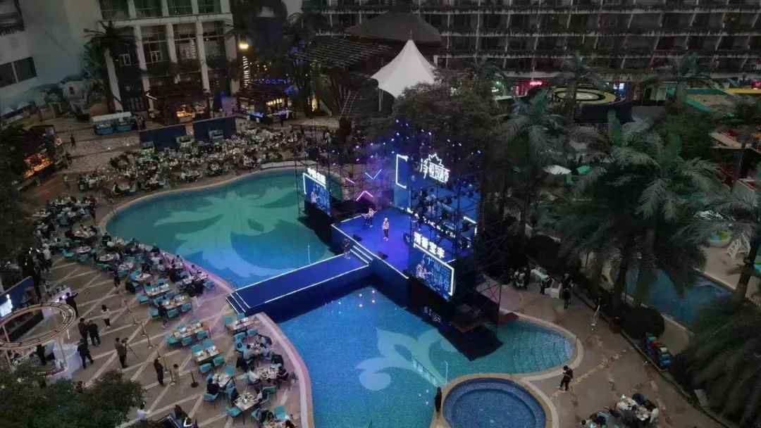 在全球最大单体建筑新世纪环球中心的天堂岛池畔,在热带风情的设计格调与轻松愉悦的氛围环境中,外籍DJ、本土乐队、灯光秀、走秀、国潮混搭秀、定制节目、自助餐、调制酒轮番登场,300位嘉宾在此尽情体验品牌魅力,增强交流互动。