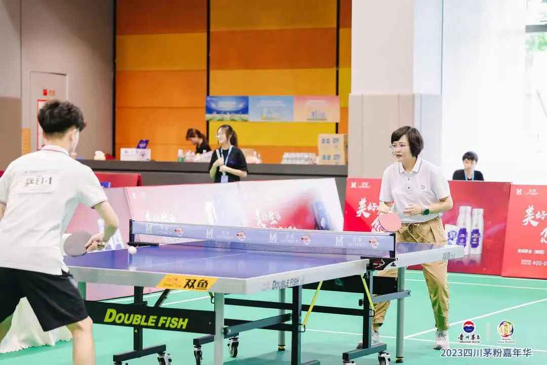 “扣杀、轻吊、网前扑球中......这边羽毛球赛场上双方队员斗志昂扬,选手为我们呈现了一场精彩绝伦的比拼对决,那边也可以听到冰球赛场上的阵阵欢呼。”在著名主持人韩乔生的解说中,一场涵盖羽毛球、乒乓球、高尔夫等项目的茅粉运动会将此次活动推向高潮。