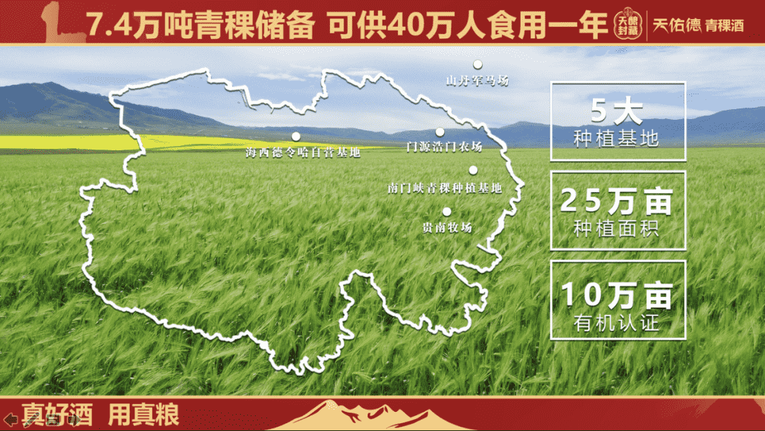 粮为酒之肉,为了保证酒体品质,天佑德严选酿酒原料,成为上市酒企中唯一使用高原生态有机青稞酿酒的企业。为此,天佑德通过合作及自建的方式拥有5大优质青稞种植基地,其中获得有机认证的种植面积已经高达10万亩。截至目前,天佑德已经拥有7.4万吨青稞储备能力,可为酿酒提供充足的优质原材料。