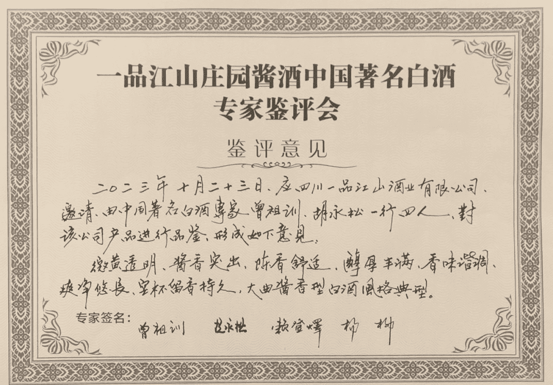 时间成就风味,精心酿制的一品江山【年份】系列也获得了专家团的一致认可。中国著名白酒专家、四川省酿酒协会专家组组长曾祖训,中国著名白酒专家、四川省酿酒工业协会专家组副组长胡永松,中国著名白酒专家、高级工程师、国家级评酒委员赖登燡在品鉴后,联名给出了高度评价。